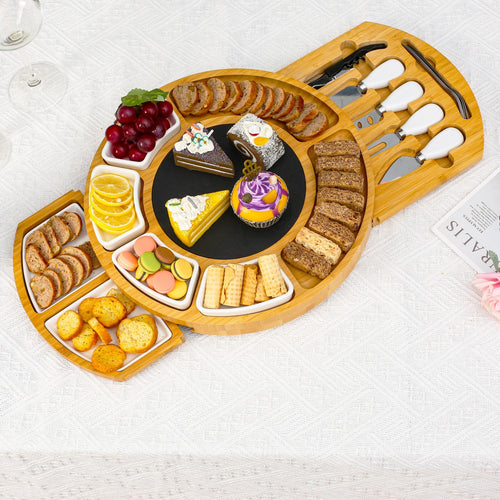 Bamboo Cheese Board Set Wooden Serving Platter Tray Gift Charcuterie Board Set